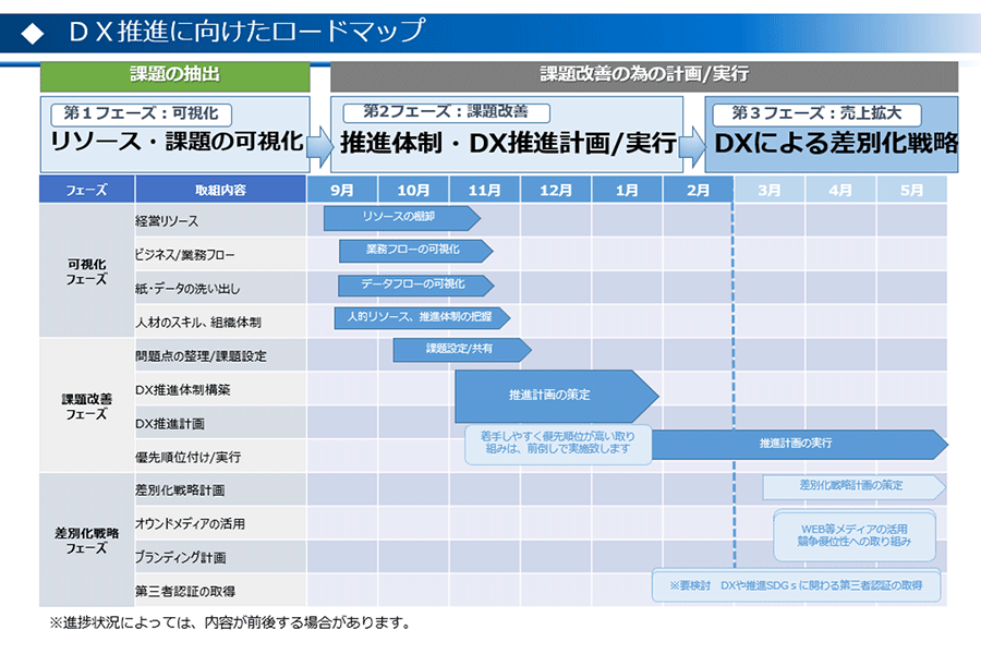 支援の始めに、DXスタート診断を実施して現状について可視化し、